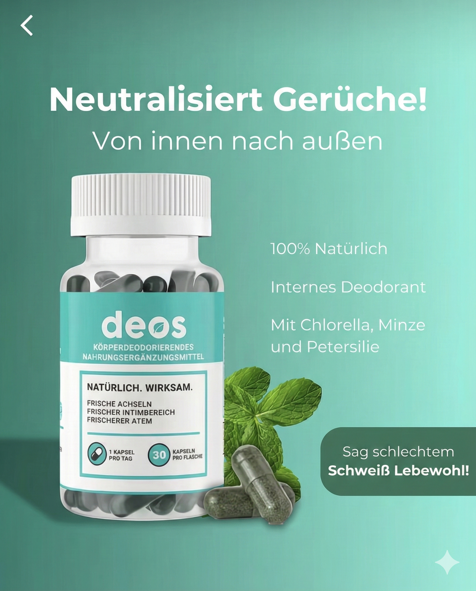 Ich leide unter sozialer Angst und Mundtrockenheit, was meinen Mundgeruch noch verschlimmerte. DeosCare ist das einzige natürliche Mittel gegen Mundgeruch, das mir wirklich das nötige Selbstvertrauen gegeben hat, um in Meetings zu sprechen, anstatt still in einer Ecke zu sitzen.