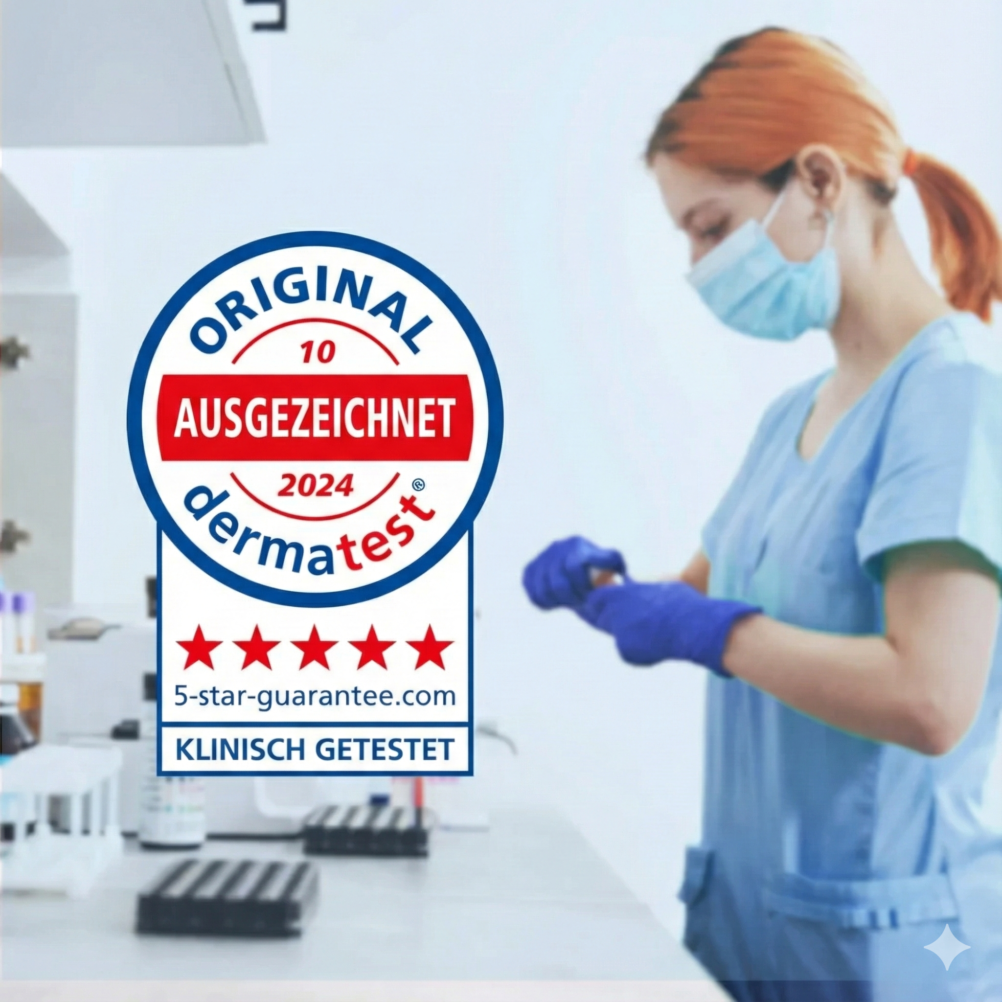 DeosCare wurde von Zahnärzten und Dermatologen mit dem5-Sterne-Siegelausgezeichnet – als Anerkennung für unsere sicheren, empfindlichkeitsfreien und hochwirksamen Formeln, denen du vertrauen kannst.